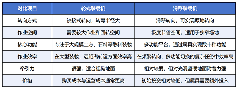 盡管都名為“裝載機(jī)”,但輪式裝載機(jī)與滑移裝載機(jī)在設(shè)計(jì)和定位上有著根本性的不同。