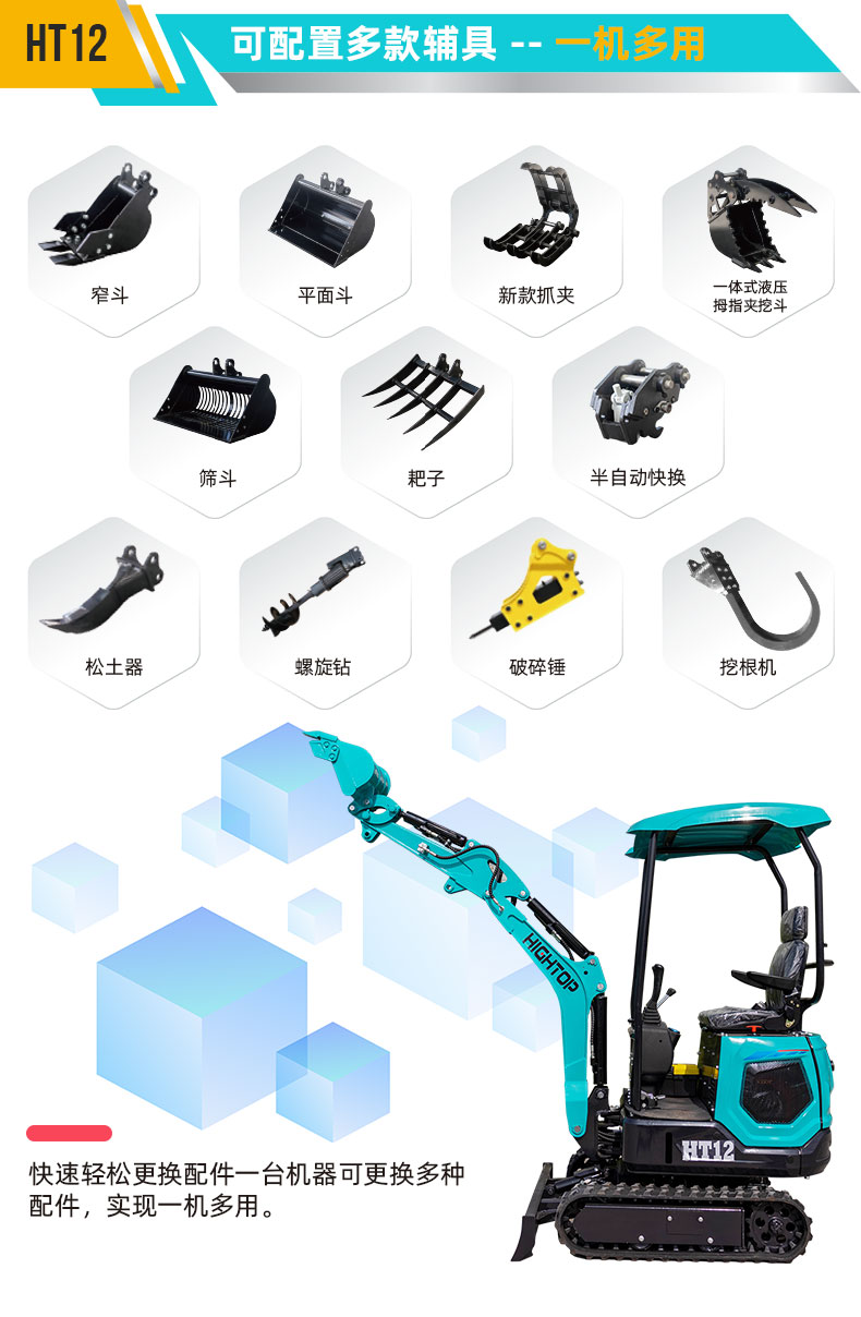 HT12 1200kg 小型挖掘機(jī)液壓油箱容積為 25L,比其他制造商的挖掘機(jī)液壓油箱大 6 升,延長(zhǎng)了炎熱天氣下的連續(xù)工作時(shí)間。