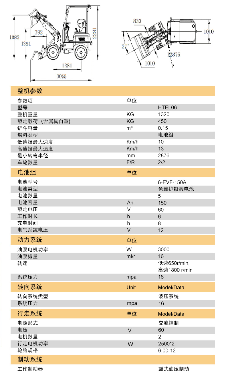 HTEL-06 電動(dòng)裝載機(jī)參數(shù)
