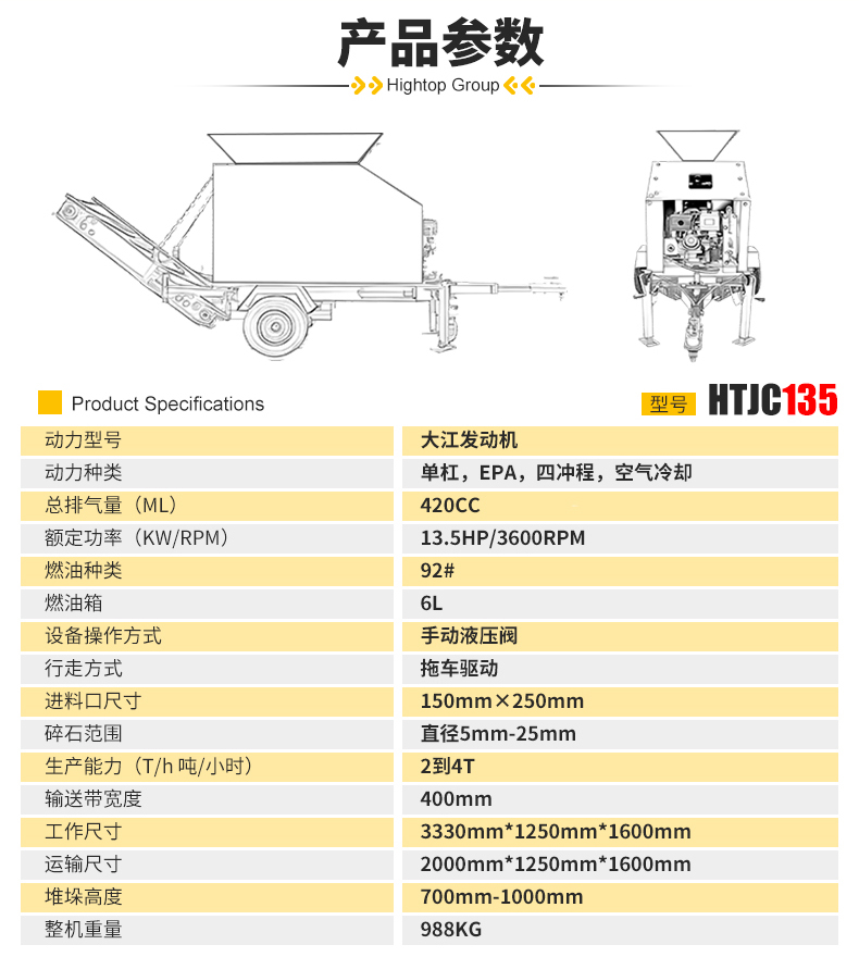 HTJC135拖車碎石機參數(shù)