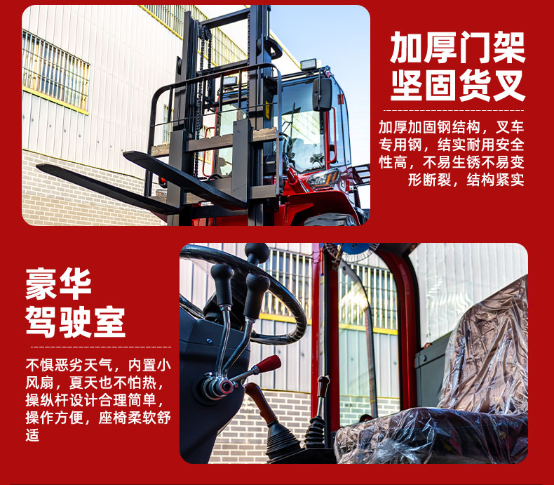 越野式叉車又叫野戰(zhàn)叉車,是在機(jī)場(chǎng)、碼頭、車站等路況條件較差的物資集散地裝卸物資的設(shè)備,它具有良好的機(jī)動(dòng)性、越野性相可靠性。越野叉車的速度高于普通叉車,其機(jī)動(dòng)性顯而易見;越野叉車發(fā)動(dòng)機(jī)功率大,采用全輪驅(qū)動(dòng)和越野輪胎,因而能夠在丘陵、山地、灘頭、沙地、雪地、冰上及泥濘道路上行駛,具有良好的越野性能。越野叉車車架有邊梁式和中部鉸接式幾種,門架有直門架式、液壓伸縮臂式和連桿前移式等多種,無論哪一種,都能確保作業(yè)中的可靠性。特點(diǎn):車身寬大,能承載不規(guī)則和寬大的貨物。離地間隙高,可以跨越場(chǎng)地上的障礙物。有四驅(qū)功能,可以在泥濘的場(chǎng)地工作。適用場(chǎng)合:建筑工地、礦山、果園牧場(chǎng)、路面粗糙的工礦企業(yè)。