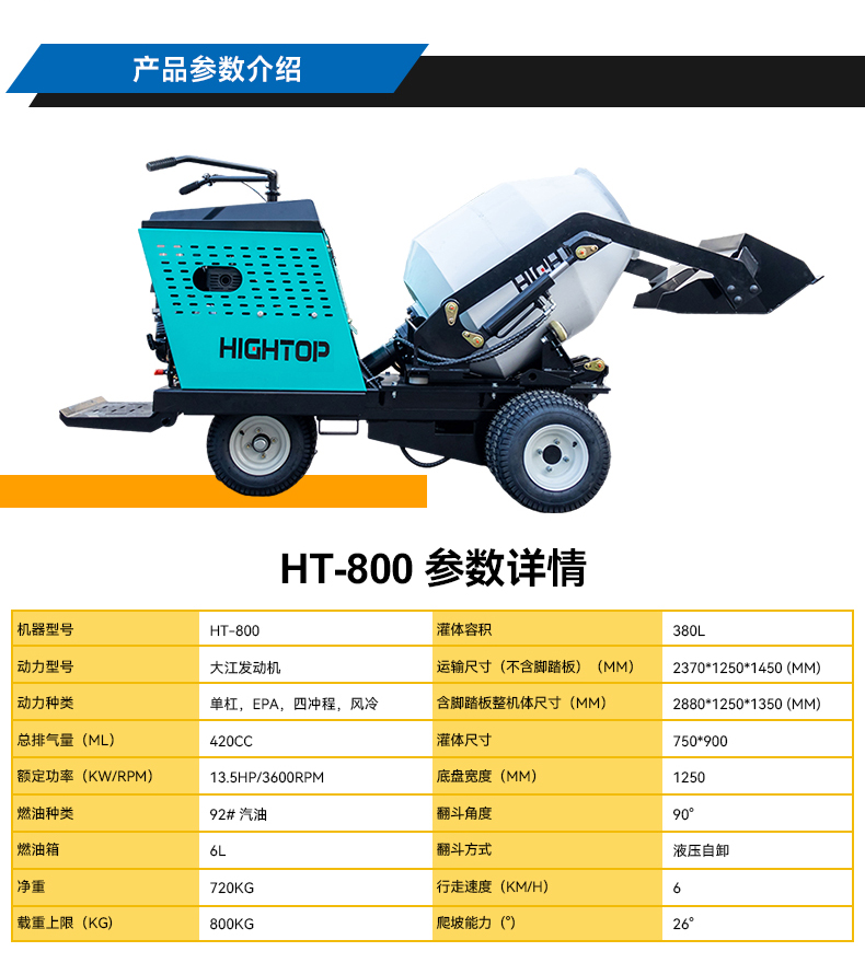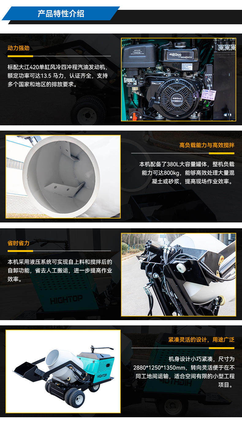 HT-800 迷你輪式水泥攪拌車產(chǎn)品特點